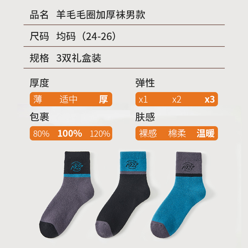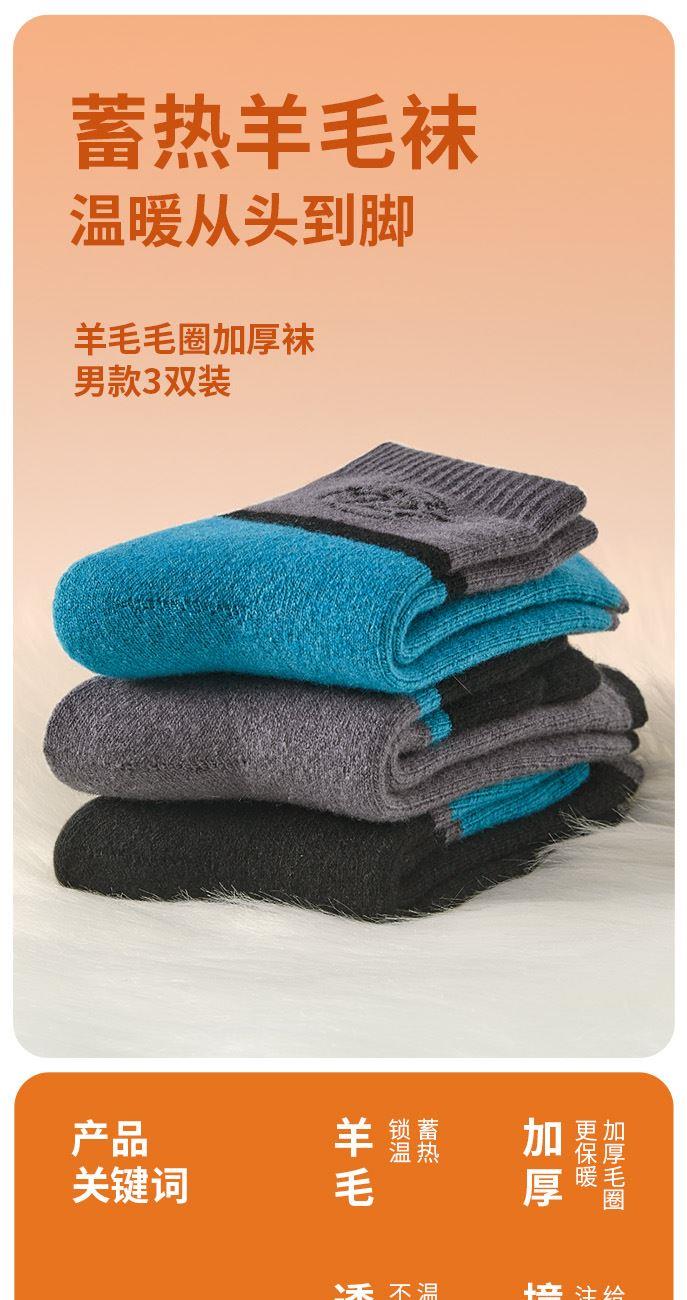 恒源祥羊毛毛圈加厚襪男款3雙裝HYX066WZ