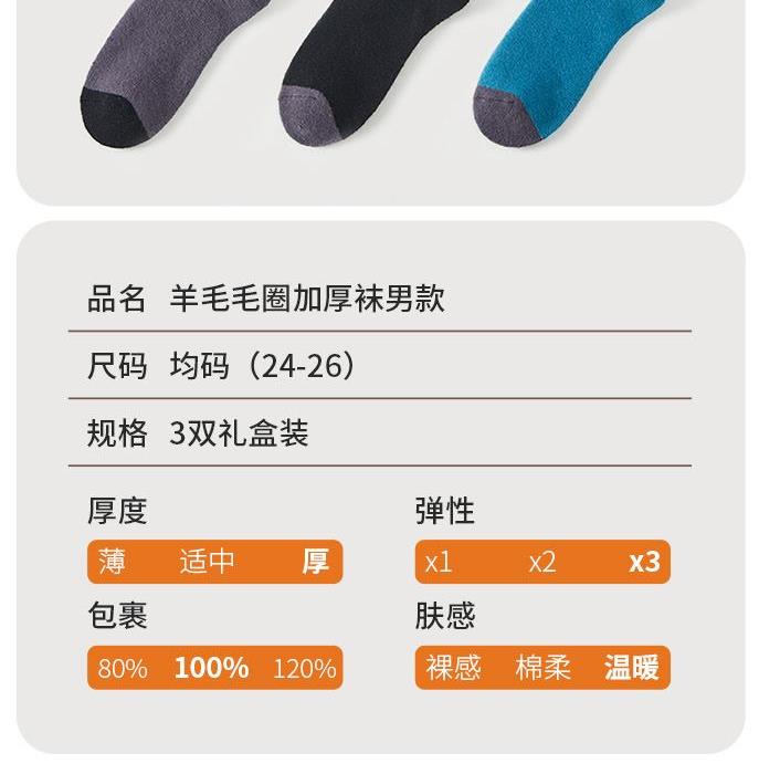 恒源祥羊毛毛圈加厚襪男款3雙裝HYX066WZ 禮品已成功加入PPT!