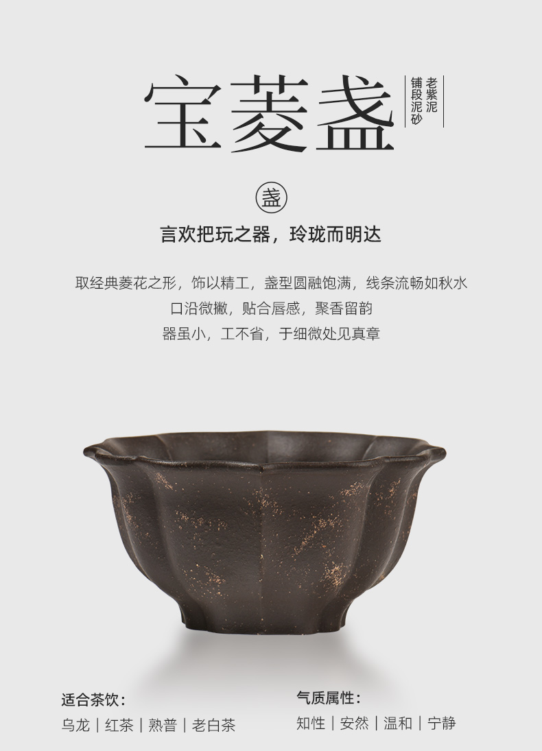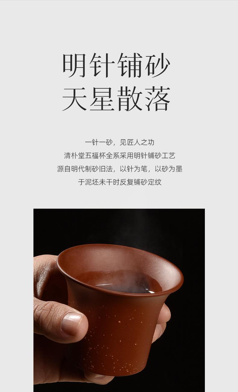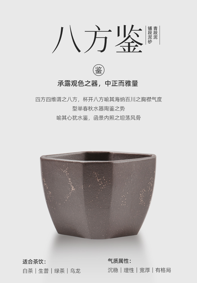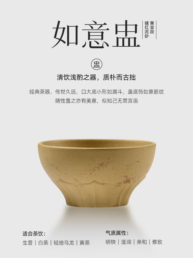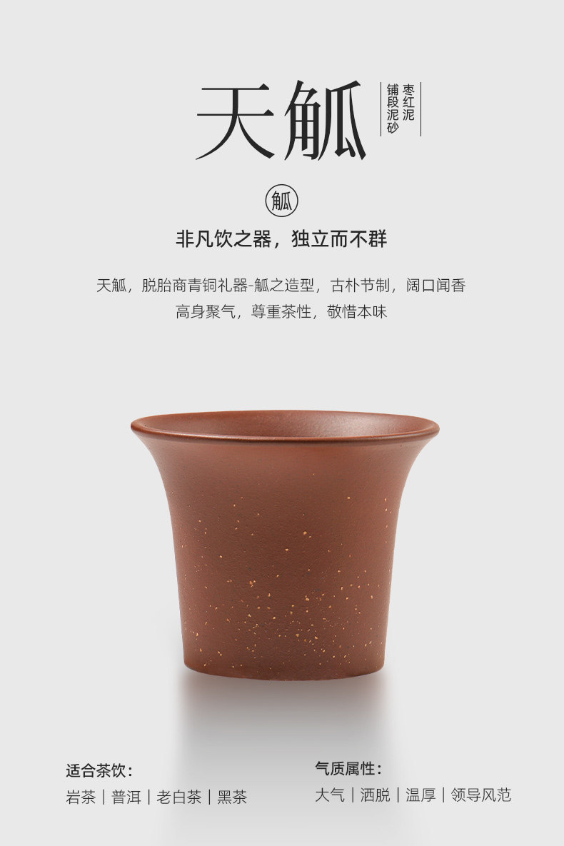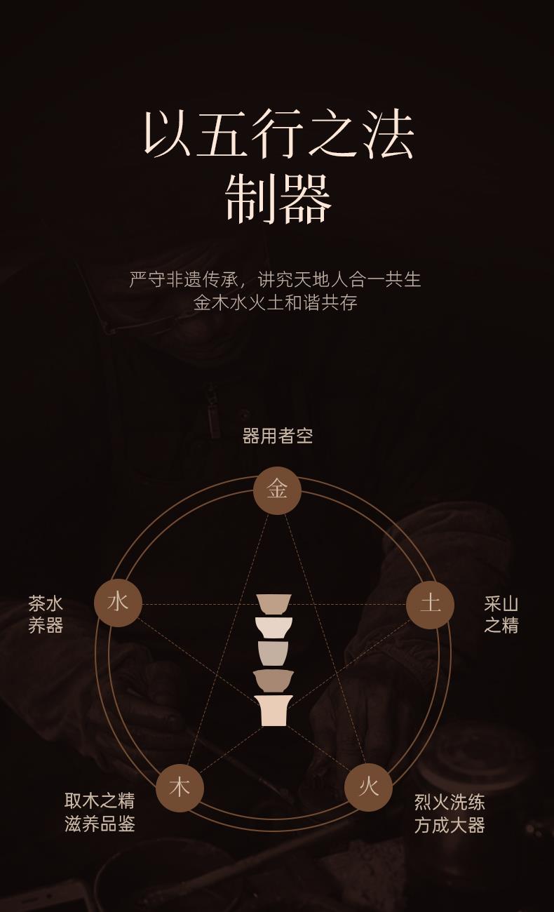 配置 · ① 葵紋盌-綠泥鋪砂 (70ml)×1只 ② 如意盞-黃金段鋪砂(80ml)×1只 ③ 八方鑒-青段泥鋪砂(90ml)×1只 ④ 寶菱盞-老紫泥鋪砂(90ml)×1只 ⑤ 天觚-棗紅泥鋪砂(115ml)×1只 ⑥ 經(jīng)典禮盒手袋×1套