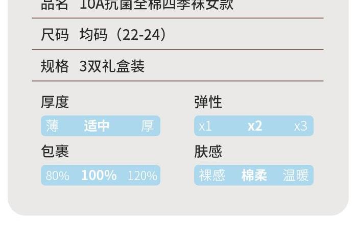 恒源祥10A全棉四季襪女款3雙裝HYX058WZ