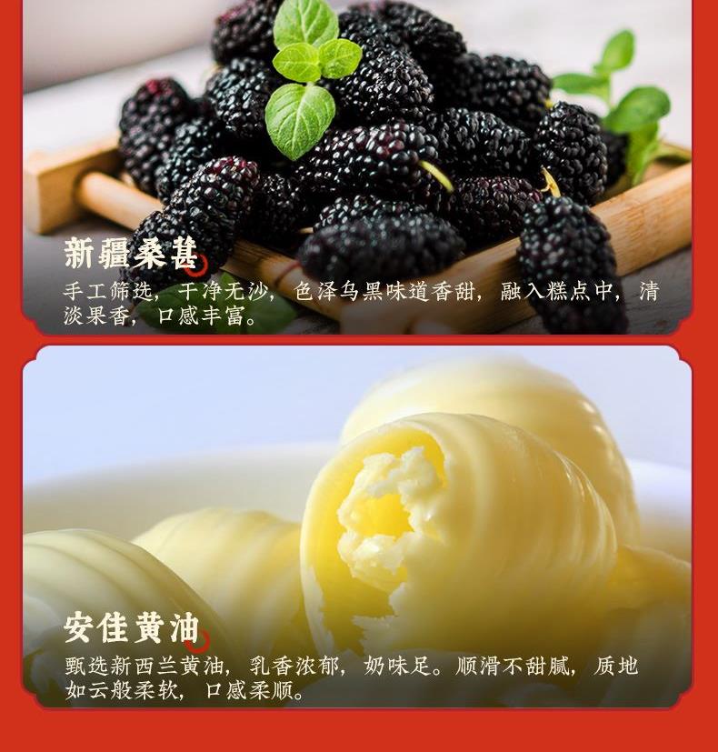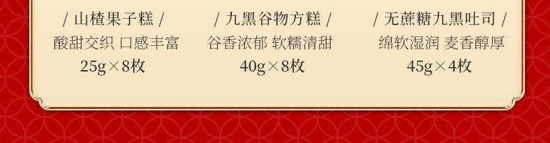 2、風味層次分明,口感豐富多元,綿軟細膩。山楂酸甜可口、九黑谷物自然麥香、蜂蜜帶來溫潤的甜味、棗糕蓬松口感扎實,越嚼越香,滿足感強