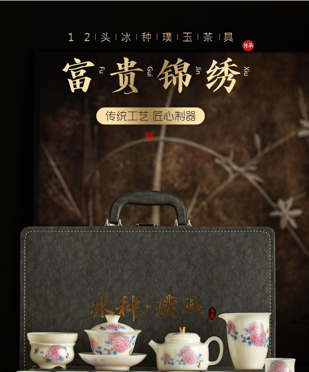 尾橋下窯冰種璞玉富貴錦繡12頭功夫茶具大套裝家用商務節日送禮 禮品已成功加入PPT!